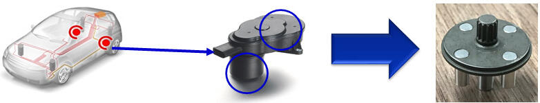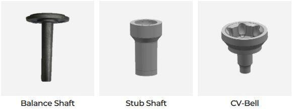 Transmission parts, oil pump rotor, insert part (engine), CV Joint/HUB (Tone Wheel, ABS Rin, etc), Chassis Parts (Actuator, Seat belt, Lever, rearwheel e-LSD, electric-hydraulic actuator.