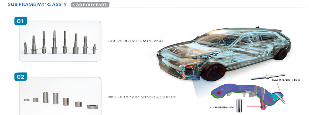Cold Forging & Wire Bending Parts (Bolt pipe, nut pipe, pinion gear, hangers, welding bolts & nuts, guide pins, sub-frame and cowl cross assemblies)