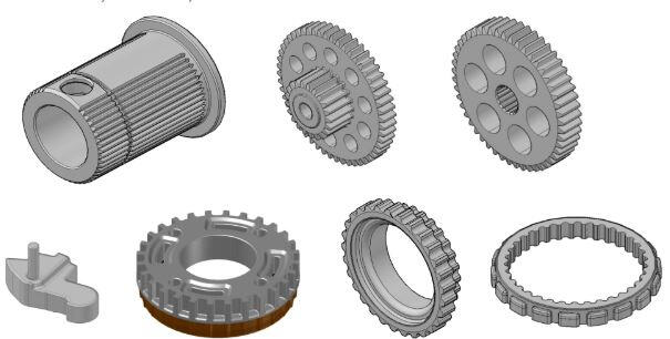 Powertrain Components: Crank shaft gear (powder metallurgy), hub clutch, valve guide, lever guide, tube ring